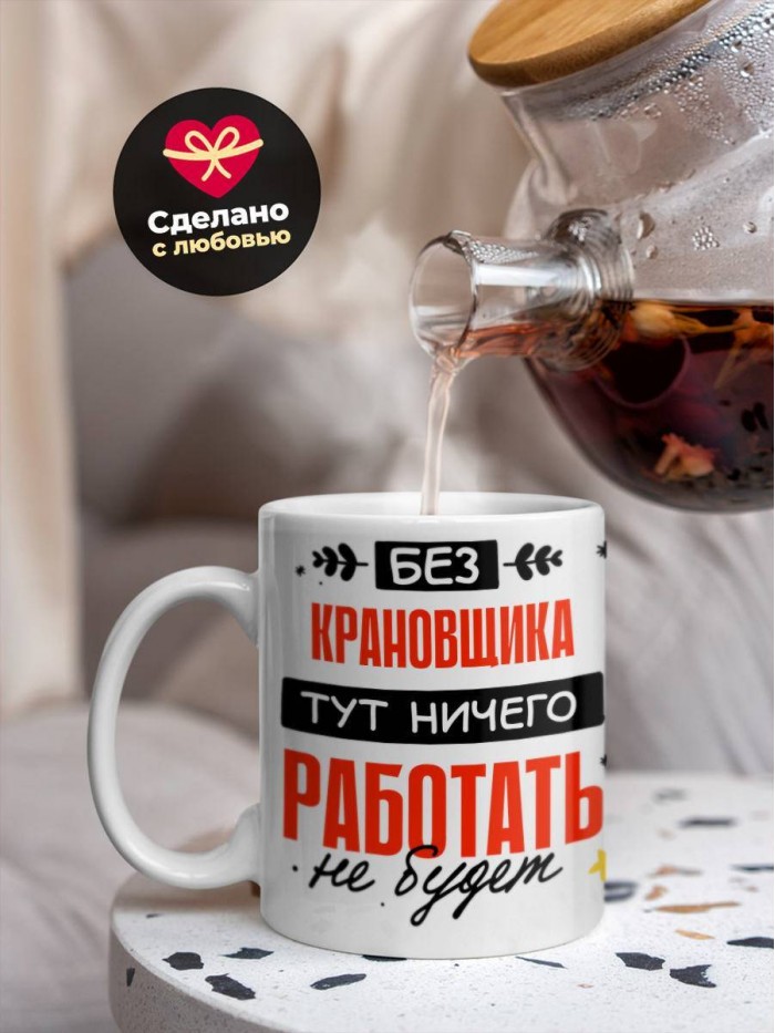 Сувенирная белая кружка с принтом "Без крановщика тут ничего работать не будет" – отличный подарок родным и близким людям для любого случая. Уникальный дизайн делает ее неповторимой и привлекательной для глаз. Принты могут быть разными: от ярких креативных решений, которые идеально подойдут молодежи, до классических элегантных узоров, радующих взгляд людей любого поколения во время чаепития. Рисунок наносится с использованием специализированного оборудования, материалами, прошедшими испытания на пригодность к использованию в быту.