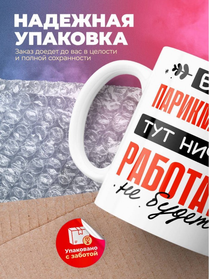 Сувенирная белая кружка с принтом "Без парикмахера тут ничего работать не будет" – отличный подарок родным и близким людям для любого случая. Уникальный дизайн делает ее неповторимой и привлекательной для глаз. Принты могут быть разными: от ярких креативных решений, которые идеально подойдут молодежи, до классических элегантных узоров, радующих взгляд людей любого поколения во время чаепития. Рисунок наносится с использованием специализированного оборудования, материалами, прошедшими испытания на пригодность к использованию в быту.