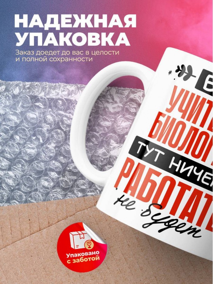 Сувенирная белая кружка с принтом "Без учителя биологии тут ничего работать не будет" – отличный подарок родным и близким людям для любого случая. Уникальный дизайн делает ее неповторимой и привлекательной для глаз. Принты могут быть разными: от ярких креативных решений, которые идеально подойдут молодежи, до классических элегантных узоров, радующих взгляд людей любого поколения во время чаепития. Рисунок наносится с использованием специализированного оборудования, материалами, прошедшими испытания на пригодность к использованию в быту.