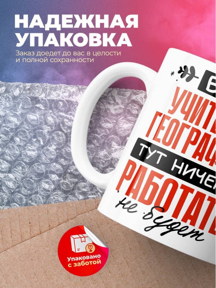 Сувенирная белая кружка с принтом "Без учителя географии тут ничего работать не будет" – отличный подарок родным и близким людям для любого случая. Уникальный дизайн делает ее неповторимой и привлекательной для глаз. Принты могут быть разными: от ярких креативных решений, которые идеально подойдут молодежи, до классических элегантных узоров, радующих взгляд людей любого поколения во время чаепития. Рисунок наносится с использованием специализированного оборудования, материалами, прошедшими испытания на пригодность к использованию в быту.