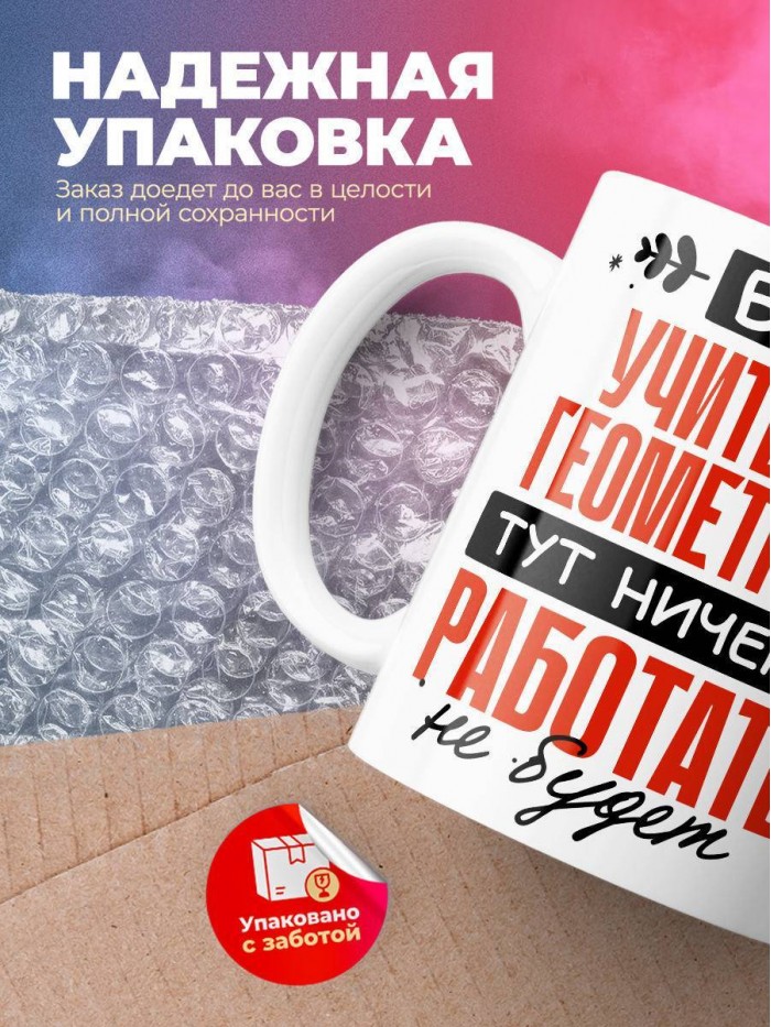 Сувенирная белая кружка с принтом "Без учителя геометрии тут ничего работать не будет" – отличный подарок родным и близким людям для любого случая. Уникальный дизайн делает ее неповторимой и привлекательной для глаз. Принты могут быть разными: от ярких креативных решений, которые идеально подойдут молодежи, до классических элегантных узоров, радующих взгляд людей любого поколения во время чаепития. Рисунок наносится с использованием специализированного оборудования, материалами, прошедшими испытания на пригодность к использованию в быту.
