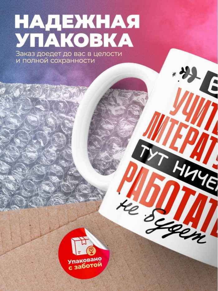 Сувенирная белая кружка с принтом "Без учителя литературы тут ничего работать не будет" – отличный подарок родным и близким людям для любого случая. Уникальный дизайн делает ее неповторимой и привлекательной для глаз. Принты могут быть разными: от ярких креативных решений, которые идеально подойдут молодежи, до классических элегантных узоров, радующих взгляд людей любого поколения во время чаепития. Рисунок наносится с использованием специализированного оборудования, материалами, прошедшими испытания на пригодность к использованию в быту.