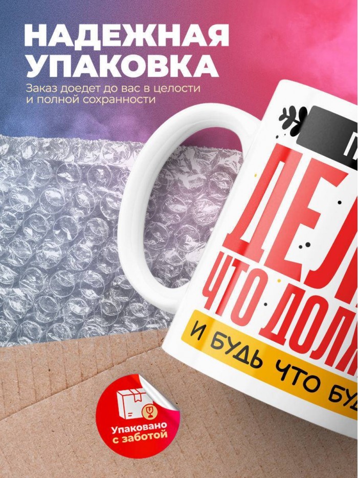 Кружка изготовлена из качественной керамики. Это обеспечивает долгий срок службы продукта. Прочный материал кружки выдерживает физические воздействия. Ее легко можно брать с собой в путешествие, без страха возникновения повреждений. Она удобна в использовании и легко моется. Покрытие кружки выдерживает мытье с применением бытовой химии любого типа. Белый цвет бокала идеально сочетается с принтами. Это делает ее универсальным подарком к празднику для людей всех возрастов и полов. При заказе можно выбрать вариант, который больше подойдет для определенного клиента.