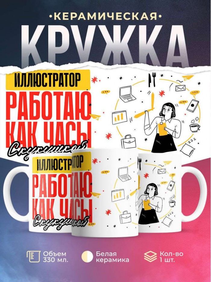 Сувенирная белая кружка с принтом "Иллюстратор работаю как часы с кукушкой" – отличный подарок родным и близким людям для любого случая. Уникальный дизайн делает ее неповторимой и привлекательной для глаз. Принты могут быть разными: от ярких креативных решений, которые идеально подойдут молодежи, до классических элегантных узоров, радующих взгляд людей любого поколения во время чаепития. Рисунок наносится с использованием специализированного оборудования, материалами, прошедшими испытания на пригодность к использованию в быту.