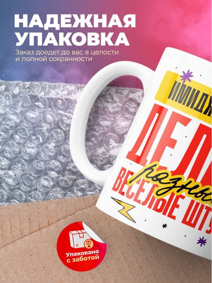 Сувенирная белая кружка с принтом "Имиджмейкер делаю разные веселые штуки" – отличный подарок родным и близким людям для любого случая. Уникальный дизайн делает ее неповторимой и привлекательной для глаз. Принты могут быть разными: от ярких креативных решений, которые идеально подойдут молодежи, до классических элегантных узоров, радующих взгляд людей любого поколения во время чаепития. Рисунок наносится с использованием специализированного оборудования, материалами, прошедшими испытания на пригодность к использованию в быту.