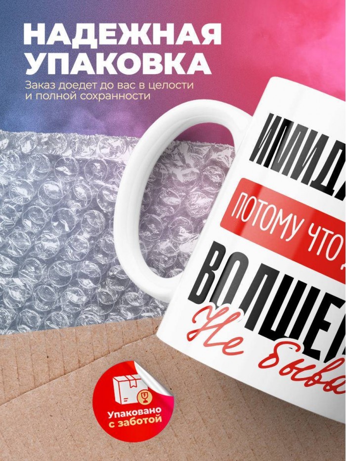 Кружка изготовлена из качественной керамики. Это обеспечивает долгий срок службы продукта. Прочный материал кружки выдерживает физические воздействия. Ее легко можно брать с собой в путешествие, без страха возникновения повреждений. Она удобна в использовании и легко моется. Покрытие кружки выдерживает мытье с применением бытовой химии любого типа. Белый цвет бокала идеально сочетается с принтами. Это делает ее универсальным подарком к празднику для людей всех возрастов и полов. При заказе можно выбрать вариант, который больше подойдет для определенного клиента.