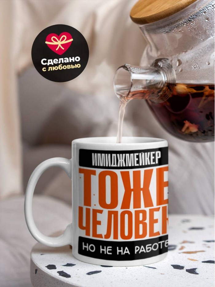 Сувенирная белая кружка с принтом "Имиджмейкер тоже человек, но не на работе" – отличный подарок родным и близким людям для любого случая. Уникальный дизайн делает ее неповторимой и привлекательной для глаз. Принты могут быть разными: от ярких креативных решений, которые идеально подойдут молодежи, до классических элегантных узоров, радующих взгляд людей любого поколения во время чаепития. Рисунок наносится с использованием специализированного оборудования, материалами, прошедшими испытания на пригодность к использованию в быту.