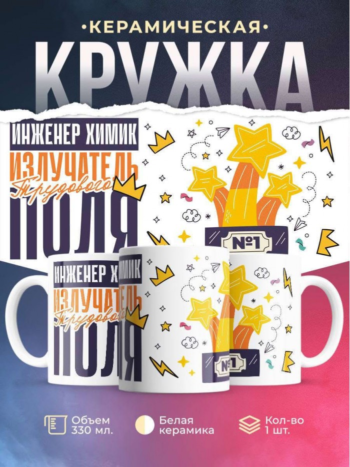 Сувенирная белая кружка с принтом "Инженер химик излучатель трудового поля" – отличный подарок родным и близким людям для любого случая. Уникальный дизайн делает ее неповторимой и привлекательной для глаз. Принты могут быть разными: от ярких креативных решений, которые идеально подойдут молодежи, до классических элегантных узоров, радующих взгляд людей любого поколения во время чаепития. Рисунок наносится с использованием специализированного оборудования, материалами, прошедшими испытания на пригодность к использованию в быту.
