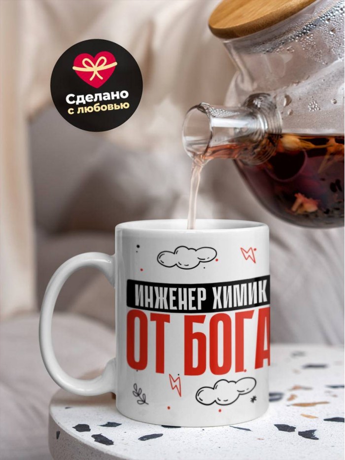 Сувенирная белая кружка с принтом "Инженер химик от бога" – отличный подарок родным и близким людям для любого случая. Уникальный дизайн делает ее неповторимой и привлекательной для глаз. Принты могут быть разными: от ярких креативных решений, которые идеально подойдут молодежи, до классических элегантных узоров, радующих взгляд людей любого поколения во время чаепития. Рисунок наносится с использованием специализированного оборудования, материалами, прошедшими испытания на пригодность к использованию в быту.