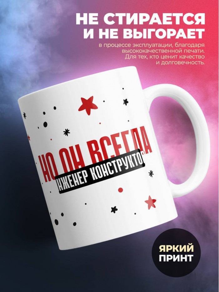Сувенирная белая кружка с принтом "Инженер конструктор не всегда прав, но он всегда инженер конструктор" – отличный подарок родным и близким людям для любого случая. Уникальный дизайн делает ее неповторимой и привлекательной для глаз. Принты могут быть разными: от ярких креативных решений, которые идеально подойдут молодежи, до классических элегантных узоров, радующих взгляд людей любого поколения во время чаепития. Рисунок наносится с использованием специализированного оборудования, материалами, прошедшими испытания на пригодность к использованию в быту.