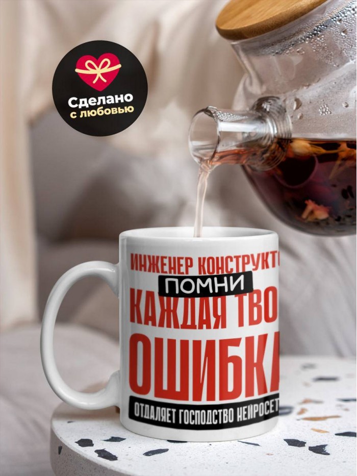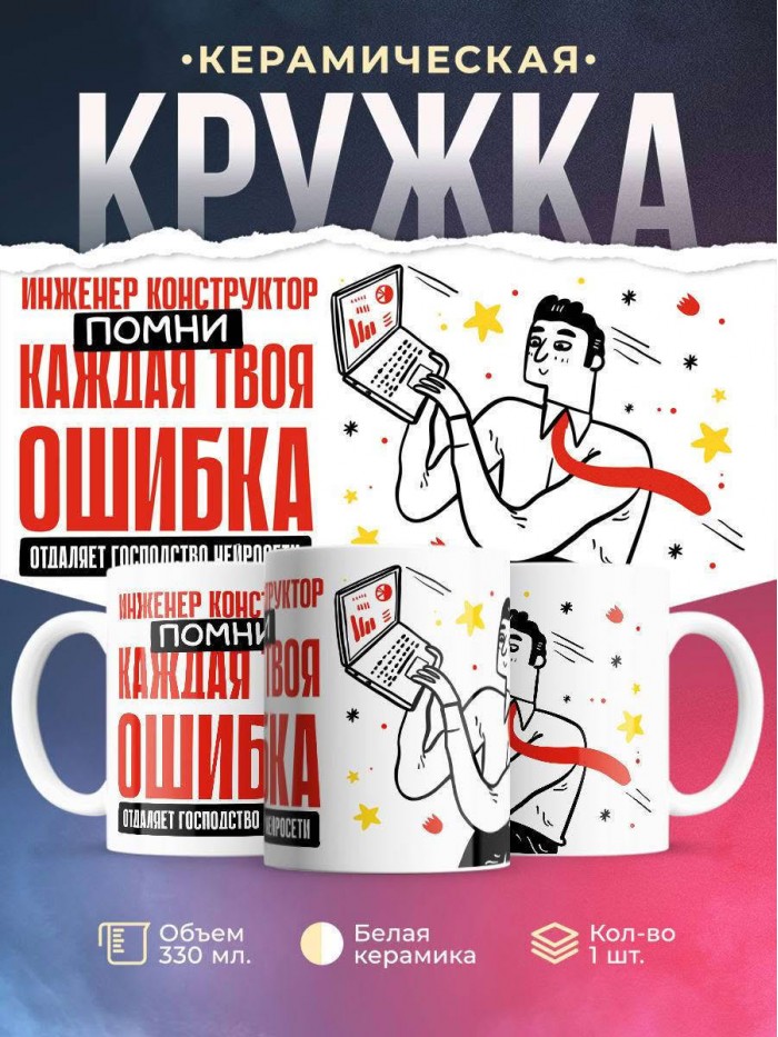 Сувенирная белая кружка с принтом "Инженер конструктор помни каждая твоя ошибка отделяет господство нейросети" – отличный подарок родным и близким людям для любого случая. Уникальный дизайн делает ее неповторимой и привлекательной для глаз. Принты могут быть разными: от ярких креативных решений, которые идеально подойдут молодежи, до классических элегантных узоров, радующих взгляд людей любого поколения во время чаепития. Рисунок наносится с использованием специализированного оборудования, материалами, прошедшими испытания на пригодность к использованию в быту.