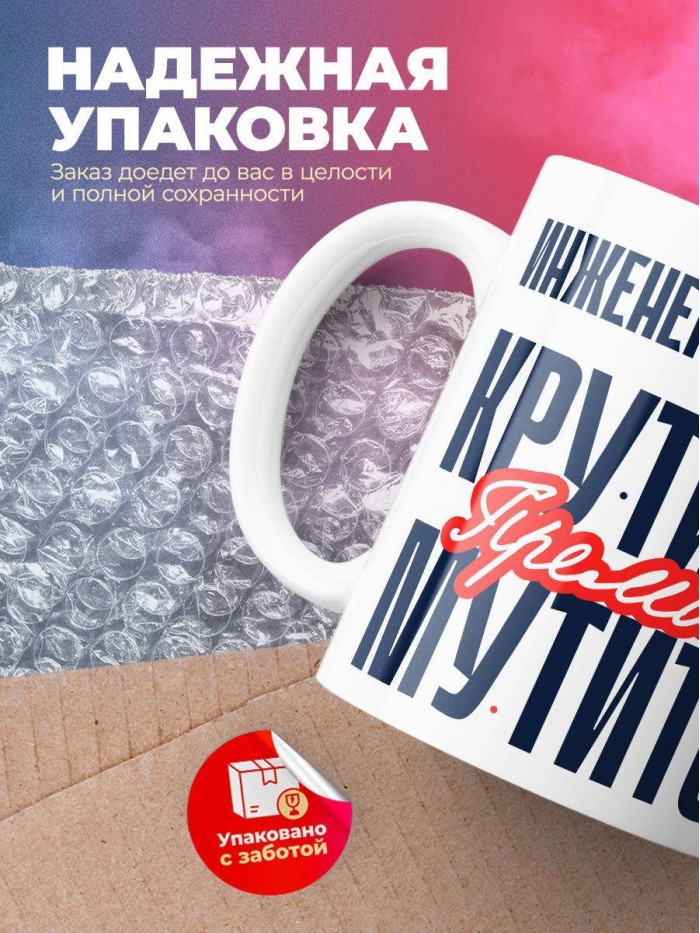 Сувенирная белая кружка с принтом "Инженер строитель крутится премия мутится" – отличный подарок родным и близким людям для любого случая. Уникальный дизайн делает ее неповторимой и привлекательной для глаз. Принты могут быть разными: от ярких креативных решений, которые идеально подойдут молодежи, до классических элегантных узоров, радующих взгляд людей любого поколения во время чаепития. Рисунок наносится с использованием специализированного оборудования, материалами, прошедшими испытания на пригодность к использованию в быту.