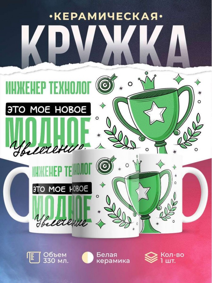 Сувенирная белая кружка с принтом "Инженер технолог это мое новое модное увлечение" – отличный подарок родным и близким людям для любого случая. Уникальный дизайн делает ее неповторимой и привлекательной для глаз. Принты могут быть разными: от ярких креативных решений, которые идеально подойдут молодежи, до классических элегантных узоров, радующих взгляд людей любого поколения во время чаепития. Рисунок наносится с использованием специализированного оборудования, материалами, прошедшими испытания на пригодность к использованию в быту.