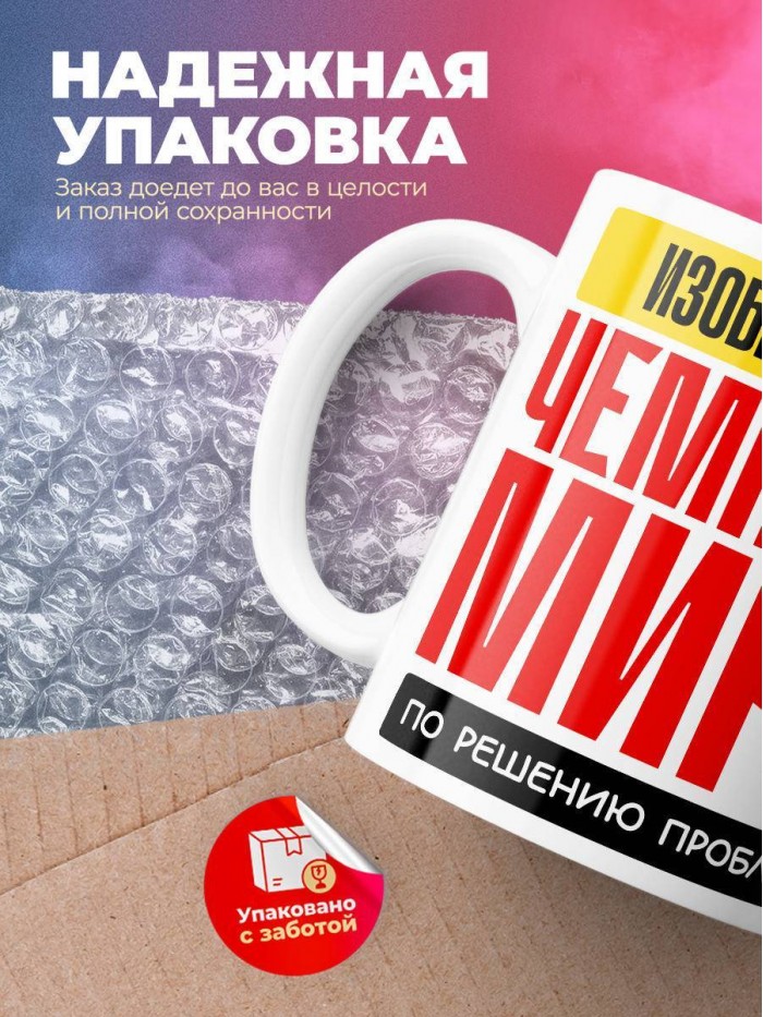 Сувенирная белая кружка с принтом "Изобретатель чемпион мира по решению проблем" – отличный подарок родным и близким людям для любого случая. Уникальный дизайн делает ее неповторимой и привлекательной для глаз. Принты могут быть разными: от ярких креативных решений, которые идеально подойдут молодежи, до классических элегантных узоров, радующих взгляд людей любого поколения во время чаепития. Рисунок наносится с использованием специализированного оборудования, материалами, прошедшими испытания на пригодность к использованию в быту.