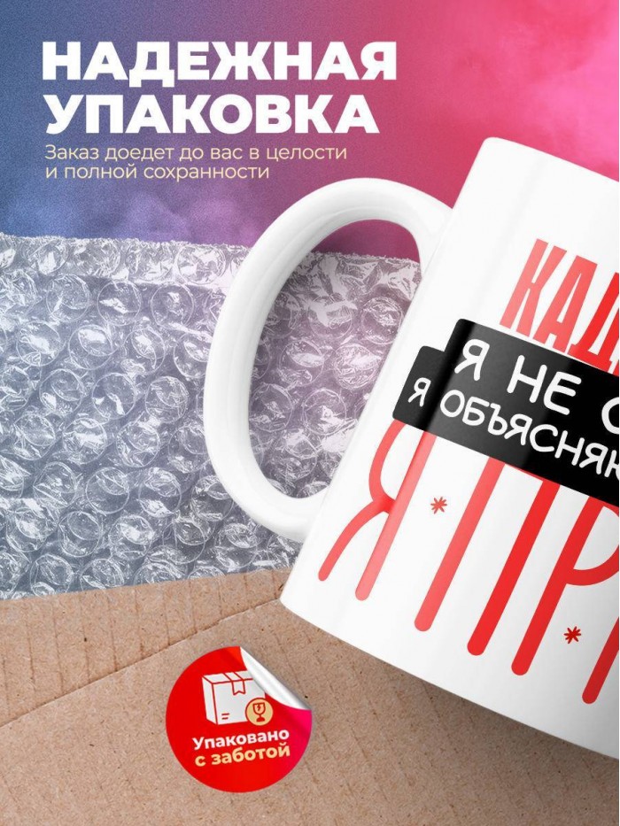 Кружка изготовлена из качественной керамики. Это обеспечивает долгий срок службы продукта. Прочный материал кружки выдерживает физические воздействия. Ее легко можно брать с собой в путешествие, без страха возникновения повреждений. Она удобна в использовании и легко моется. Покрытие кружки выдерживает мытье с применением бытовой химии любого типа. Белый цвет бокала идеально сочетается с принтами. Это делает ее универсальным подарком к празднику для людей всех возрастов и полов. При заказе можно выбрать вариант, который больше подойдет для определенного клиента.