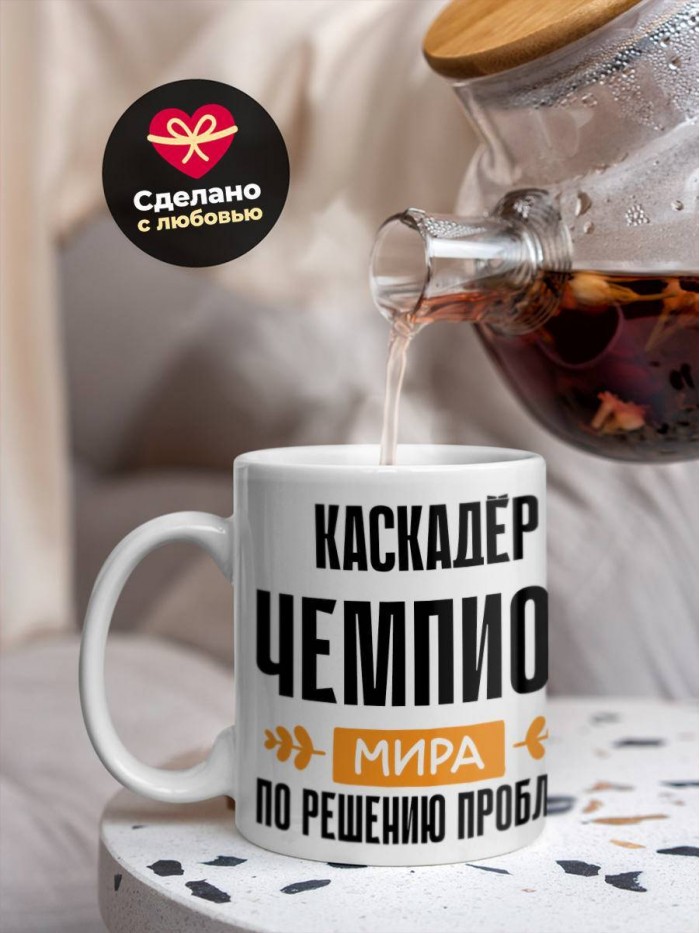 Сувенирная белая кружка с принтом "Каскадёр чемпион мира по решению проблем" – отличный подарок родным и близким людям для любого случая. Уникальный дизайн делает ее неповторимой и привлекательной для глаз. Принты могут быть разными: от ярких креативных решений, которые идеально подойдут молодежи, до классических элегантных узоров, радующих взгляд людей любого поколения во время чаепития. Рисунок наносится с использованием специализированного оборудования, материалами, прошедшими испытания на пригодность к использованию в быту.