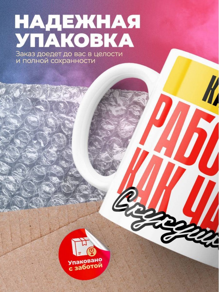 Сувенирная белая кружка с принтом "Кассир работаю как часы с кукушкой" – отличный подарок родным и близким людям для любого случая. Уникальный дизайн делает ее неповторимой и привлекательной для глаз. Принты могут быть разными: от ярких креативных решений, которые идеально подойдут молодежи, до классических элегантных узоров, радующих взгляд людей любого поколения во время чаепития. Рисунок наносится с использованием специализированного оборудования, материалами, прошедшими испытания на пригодность к использованию в быту.