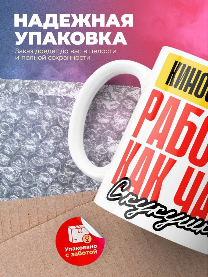 Сувенирная белая кружка с принтом "Кинооператор работаю как часы с кукушкой" – отличный подарок родным и близким людям для любого случая. Уникальный дизайн делает ее неповторимой и привлекательной для глаз. Принты могут быть разными: от ярких креативных решений, которые идеально подойдут молодежи, до классических элегантных узоров, радующих взгляд людей любого поколения во время чаепития. Рисунок наносится с использованием специализированного оборудования, материалами, прошедшими испытания на пригодность к использованию в быту.