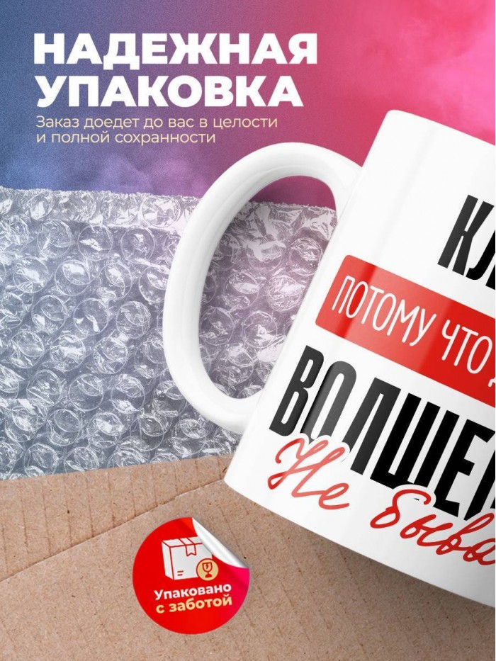 Кружка изготовлена из качественной керамики. Это обеспечивает долгий срок службы продукта. Прочный материал кружки выдерживает физические воздействия. Ее легко можно брать с собой в путешествие, без страха возникновения повреждений. Она удобна в использовании и легко моется. Покрытие кружки выдерживает мытье с применением бытовой химии любого типа. Белый цвет бокала идеально сочетается с принтами. Это делает ее универсальным подарком к празднику для людей всех возрастов и полов. При заказе можно выбрать вариант, который больше подойдет для определенного клиента.