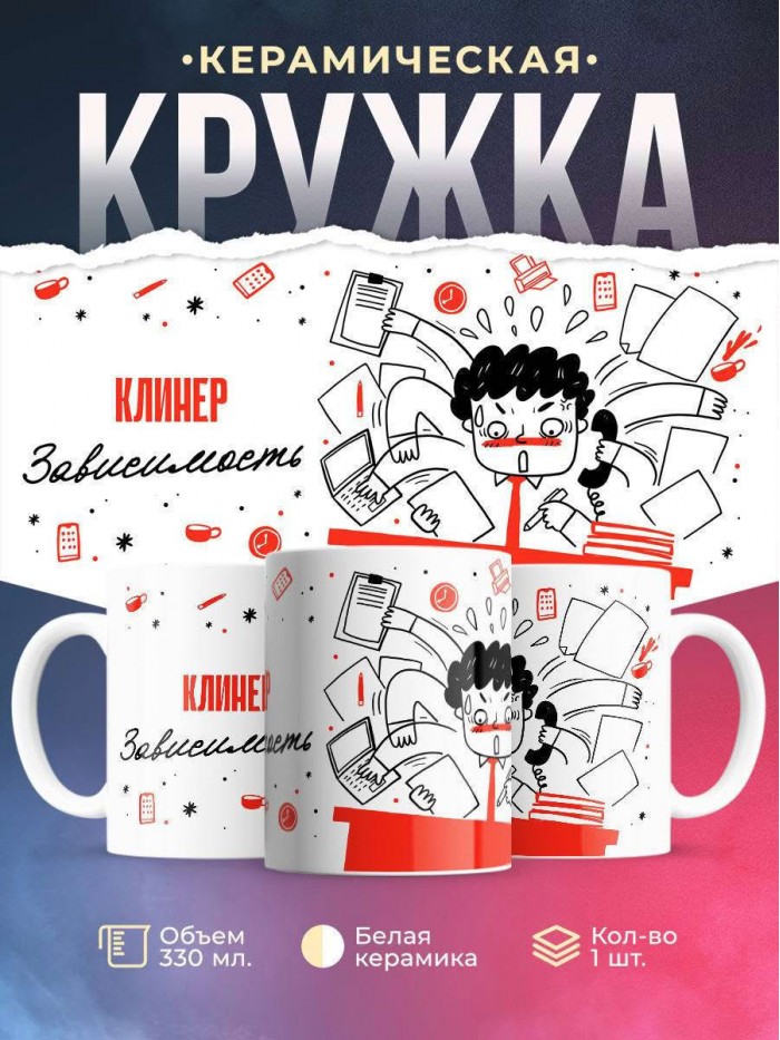 Сувенирная белая кружка с принтом "Клинер зависимость" – отличный подарок родным и близким людям для любого случая. Уникальный дизайн делает ее неповторимой и привлекательной для глаз. Принты могут быть разными: от ярких креативных решений, которые идеально подойдут молодежи, до классических элегантных узоров, радующих взгляд людей любого поколения во время чаепития. Рисунок наносится с использованием специализированного оборудования, материалами, прошедшими испытания на пригодность к использованию в быту.