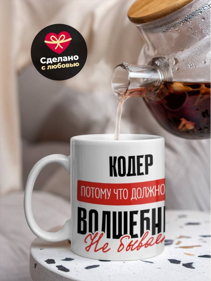 Сувенирная белая кружка с принтом "Кодер, потому что должности волшебник не бывает" – отличный подарок родным и близким людям для любого случая. Уникальный дизайн делает ее неповторимой и привлекательной для глаз. Принты могут быть разными: от ярких креативных решений, которые идеально подойдут молодежи, до классических элегантных узоров, радующих взгляд людей любого поколения во время чаепития. Рисунок наносится с использованием специализированного оборудования, материалами, прошедшими испытания на пригодность к использованию в быту.