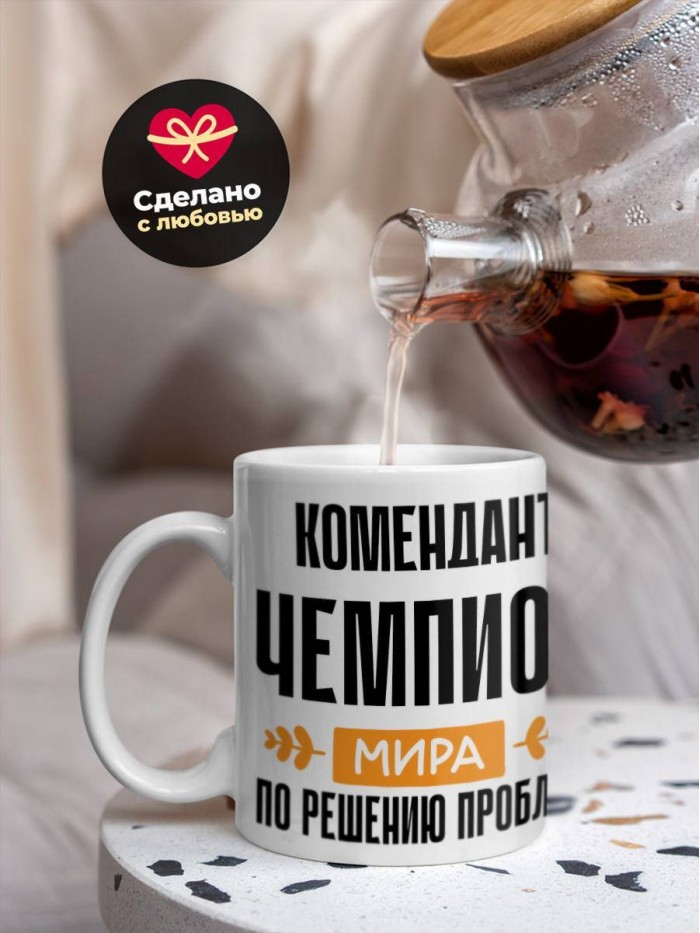 На складе Код товара: КружкаБелая-PZ-0026583 Комендант чемпион мира по решению проблем