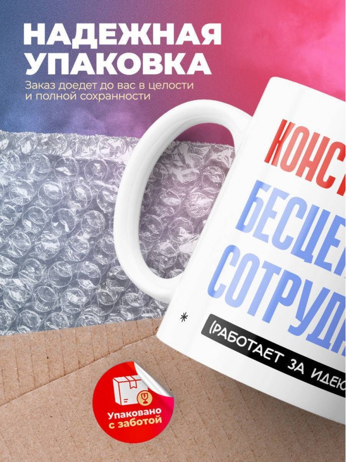 Кружка изготовлена из качественной керамики. Это обеспечивает долгий срок службы продукта. Прочный материал кружки выдерживает физические воздействия. Ее легко можно брать с собой в путешествие, без страха возникновения повреждений. Она удобна в использовании и легко моется. Покрытие кружки выдерживает мытье с применением бытовой химии любого типа. Белый цвет бокала идеально сочетается с принтами. Это делает ее универсальным подарком к празднику для людей всех возрастов и полов. При заказе можно выбрать вариант, который больше подойдет для определенного клиента.