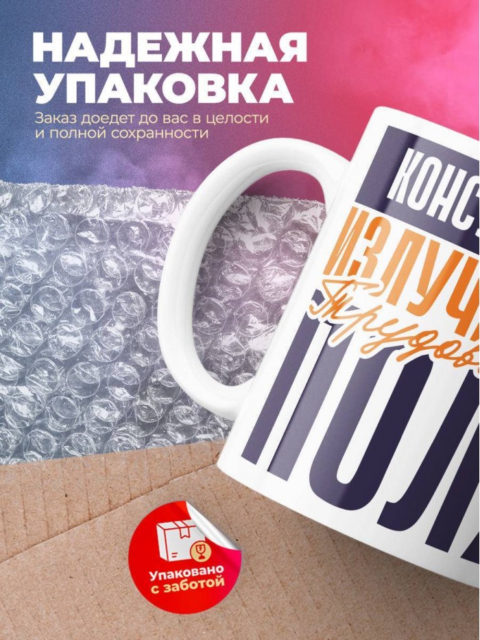 Кружка изготовлена из качественной керамики. Это обеспечивает долгий срок службы продукта. Прочный материал кружки выдерживает физические воздействия. Ее легко можно брать с собой в путешествие, без страха возникновения повреждений. Она удобна в использовании и легко моется. Покрытие кружки выдерживает мытье с применением бытовой химии любого типа. Белый цвет бокала идеально сочетается с принтами. Это делает ее универсальным подарком к празднику для людей всех возрастов и полов. При заказе можно выбрать вариант, который больше подойдет для определенного клиента.