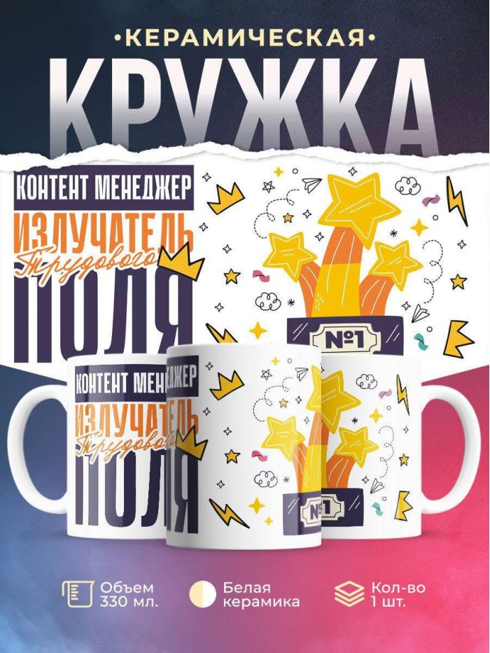 Сувенирная белая кружка с принтом "Контент менеджер излучатель трудового поля" – отличный подарок родным и близким людям для любого случая. Уникальный дизайн делает ее неповторимой и привлекательной для глаз. Принты могут быть разными: от ярких креативных решений, которые идеально подойдут молодежи, до классических элегантных узоров, радующих взгляд людей любого поколения во время чаепития. Рисунок наносится с использованием специализированного оборудования, материалами, прошедшими испытания на пригодность к использованию в быту.