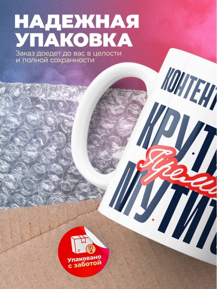 Сувенирная белая кружка с принтом "Контент менеджер крутится премия мутится" – отличный подарок родным и близким людям для любого случая. Уникальный дизайн делает ее неповторимой и привлекательной для глаз. Принты могут быть разными: от ярких креативных решений, которые идеально подойдут молодежи, до классических элегантных узоров, радующих взгляд людей любого поколения во время чаепития. Рисунок наносится с использованием специализированного оборудования, материалами, прошедшими испытания на пригодность к использованию в быту.