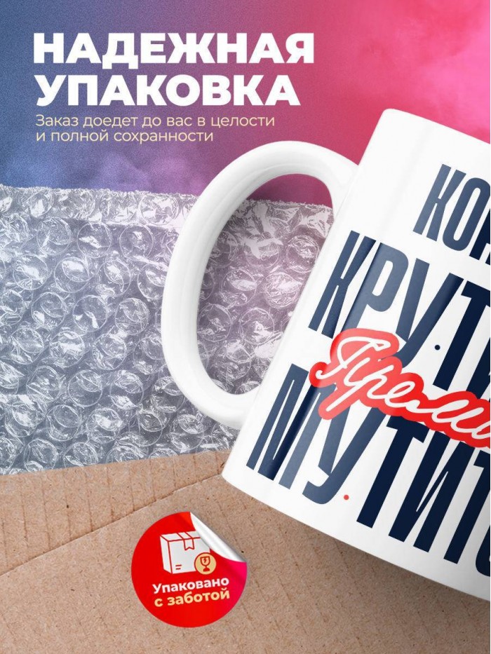 Кружка изготовлена из качественной керамики. Это обеспечивает долгий срок службы продукта. Прочный материал кружки выдерживает физические воздействия. Ее легко можно брать с собой в путешествие, без страха возникновения повреждений. Она удобна в использовании и легко моется. Покрытие кружки выдерживает мытье с применением бытовой химии любого типа. Белый цвет бокала идеально сочетается с принтами. Это делает ее универсальным подарком к празднику для людей всех возрастов и полов. При заказе можно выбрать вариант, который больше подойдет для определенного клиента.