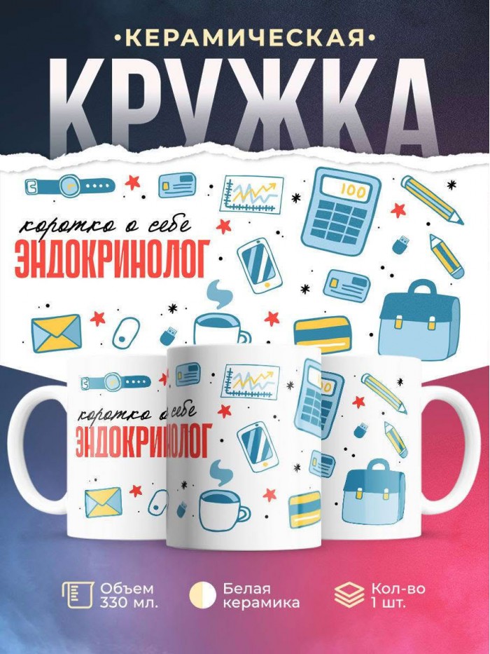 Сувенирная белая кружка с принтом "Коротко о себе эндокринолог" – отличный подарок родным и близким людям для любого случая. Уникальный дизайн делает ее неповторимой и привлекательной для глаз. Принты могут быть разными: от ярких креативных решений, которые идеально подойдут молодежи, до классических элегантных узоров, радующих взгляд людей любого поколения во время чаепития. Рисунок наносится с использованием специализированного оборудования, материалами, прошедшими испытания на пригодность к использованию в быту.