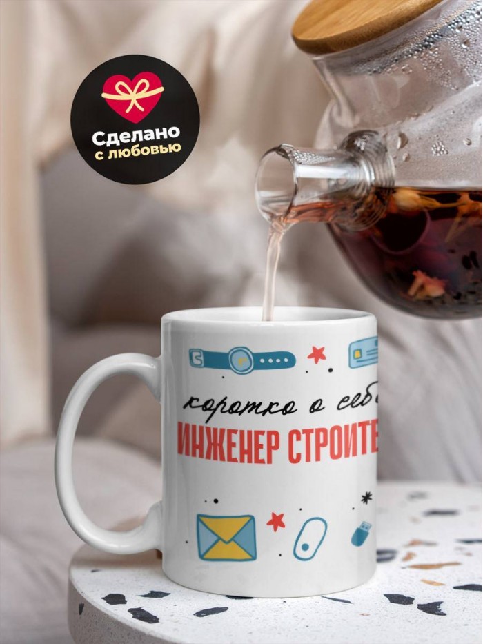 Сувенирная белая кружка с принтом "Коротко о себе инженер строитель" – отличный подарок родным и близким людям для любого случая. Уникальный дизайн делает ее неповторимой и привлекательной для глаз. Принты могут быть разными: от ярких креативных решений, которые идеально подойдут молодежи, до классических элегантных узоров, радующих взгляд людей любого поколения во время чаепития. Рисунок наносится с использованием специализированного оборудования, материалами, прошедшими испытания на пригодность к использованию в быту.