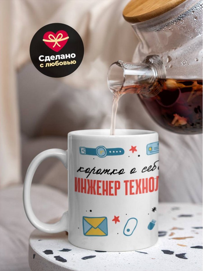 Сувенирная белая кружка с принтом "Коротко о себе инженер технолог" – отличный подарок родным и близким людям для любого случая. Уникальный дизайн делает ее неповторимой и привлекательной для глаз. Принты могут быть разными: от ярких креативных решений, которые идеально подойдут молодежи, до классических элегантных узоров, радующих взгляд людей любого поколения во время чаепития. Рисунок наносится с использованием специализированного оборудования, материалами, прошедшими испытания на пригодность к использованию в быту.