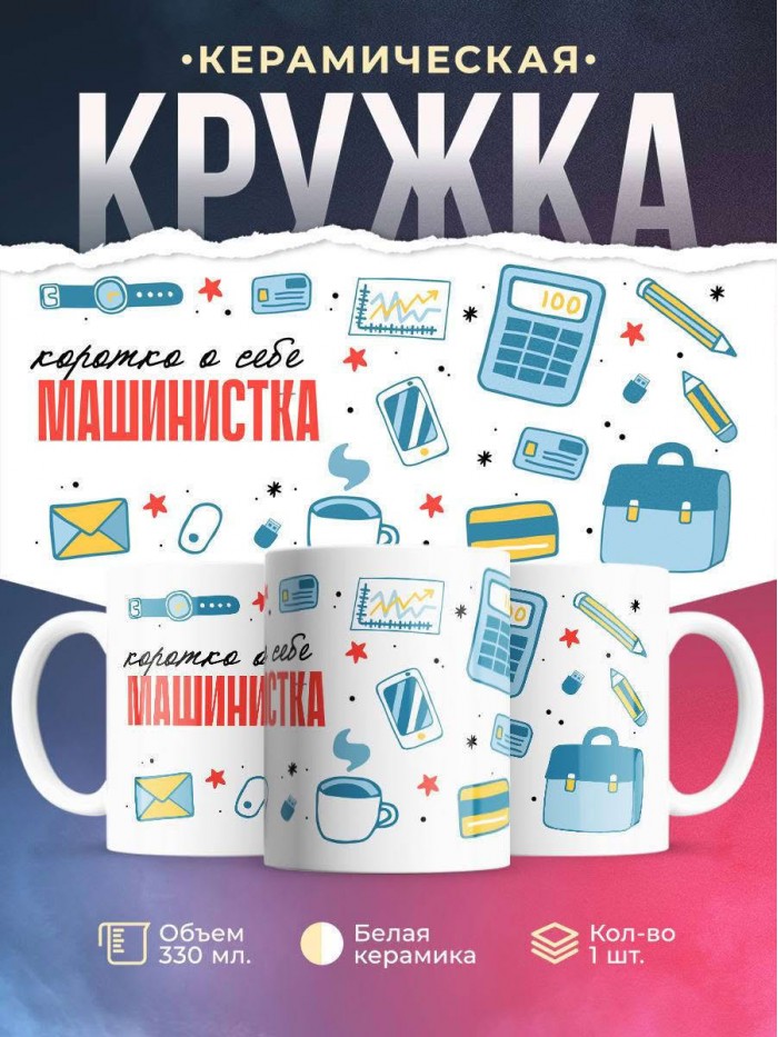 Сувенирная белая кружка с принтом "Коротко о себе машинистка" – отличный подарок родным и близким людям для любого случая. Уникальный дизайн делает ее неповторимой и привлекательной для глаз. Принты могут быть разными: от ярких креативных решений, которые идеально подойдут молодежи, до классических элегантных узоров, радующих взгляд людей любого поколения во время чаепития. Рисунок наносится с использованием специализированного оборудования, материалами, прошедшими испытания на пригодность к использованию в быту.