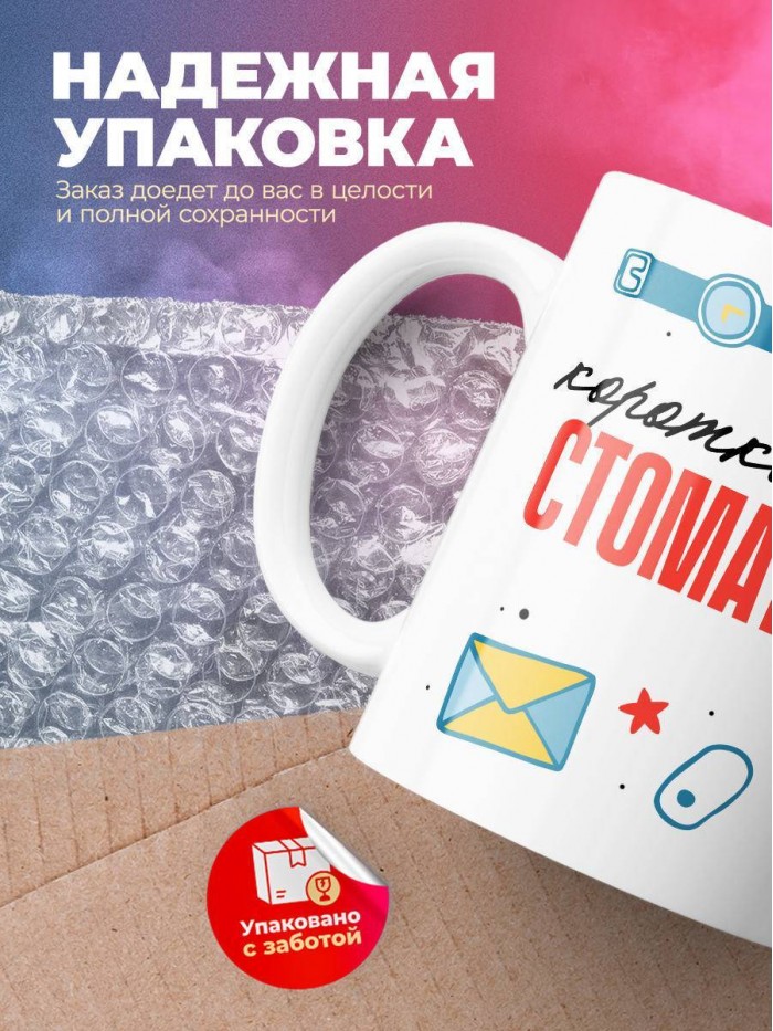 Сувенирная белая кружка с принтом "Коротко о себе стоматолог" – отличный подарок родным и близким людям для любого случая. Уникальный дизайн делает ее неповторимой и привлекательной для глаз. Принты могут быть разными: от ярких креативных решений, которые идеально подойдут молодежи, до классических элегантных узоров, радующих взгляд людей любого поколения во время чаепития. Рисунок наносится с использованием специализированного оборудования, материалами, прошедшими испытания на пригодность к использованию в быту.