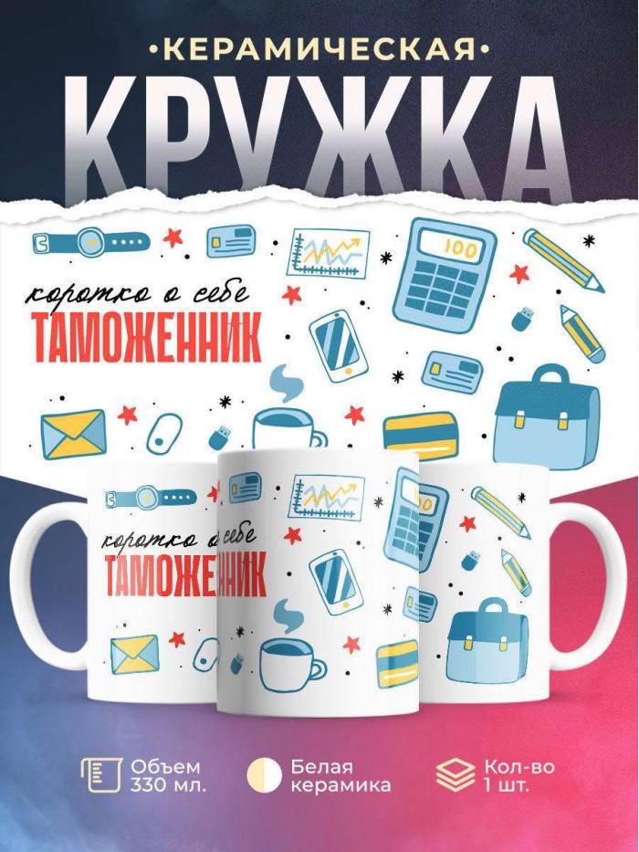 Сувенирная белая кружка с принтом "Коротко о себе таможенник" – отличный подарок родным и близким людям для любого случая. Уникальный дизайн делает ее неповторимой и привлекательной для глаз. Принты могут быть разными: от ярких креативных решений, которые идеально подойдут молодежи, до классических элегантных узоров, радующих взгляд людей любого поколения во время чаепития. Рисунок наносится с использованием специализированного оборудования, материалами, прошедшими испытания на пригодность к использованию в быту.