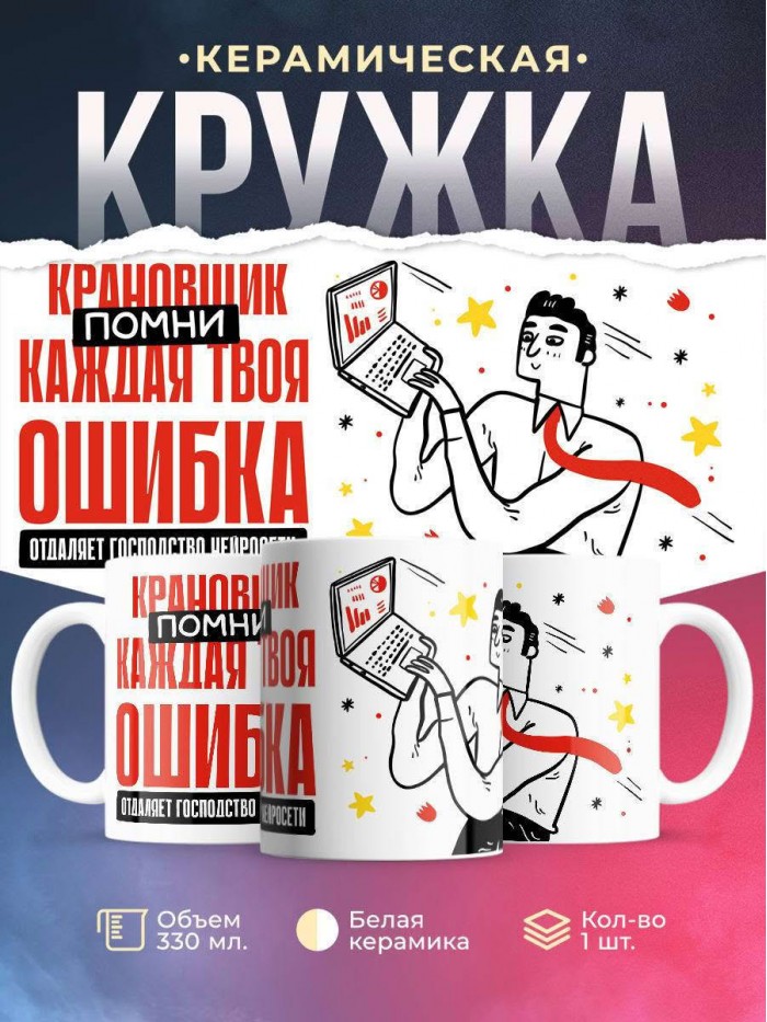 Сувенирная белая кружка с принтом "Крановщик помни каждая твоя ошибка отделяет господство нейросети" – отличный подарок родным и близким людям для любого случая. Уникальный дизайн делает ее неповторимой и привлекательной для глаз. Принты могут быть разными: от ярких креативных решений, которые идеально подойдут молодежи, до классических элегантных узоров, радующих взгляд людей любого поколения во время чаепития. Рисунок наносится с использованием специализированного оборудования, материалами, прошедшими испытания на пригодность к использованию в быту.