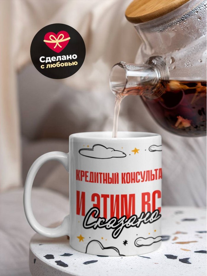 Сувенирная белая кружка с принтом "Кредитный консультант и этим все сказано" – отличный подарок родным и близким людям для любого случая. Уникальный дизайн делает ее неповторимой и привлекательной для глаз. Принты могут быть разными: от ярких креативных решений, которые идеально подойдут молодежи, до классических элегантных узоров, радующих взгляд людей любого поколения во время чаепития. Рисунок наносится с использованием специализированного оборудования, материалами, прошедшими испытания на пригодность к использованию в быту.