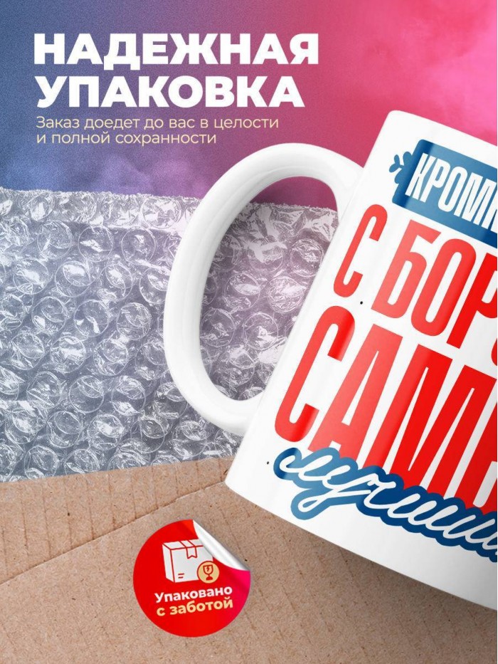 Кружка изготовлена из качественной керамики. Это обеспечивает долгий срок службы продукта. Прочный материал кружки выдерживает физические воздействия. Ее легко можно брать с собой в путешествие, без страха возникновения повреждений. Она удобна в использовании и легко моется. Покрытие кружки выдерживает мытье с применением бытовой химии любого типа. Белый цвет бокала идеально сочетается с принтами. Это делает ее универсальным подарком к празднику для людей всех возрастов и полов. При заказе можно выбрать вариант, который больше подойдет для определенного клиента.