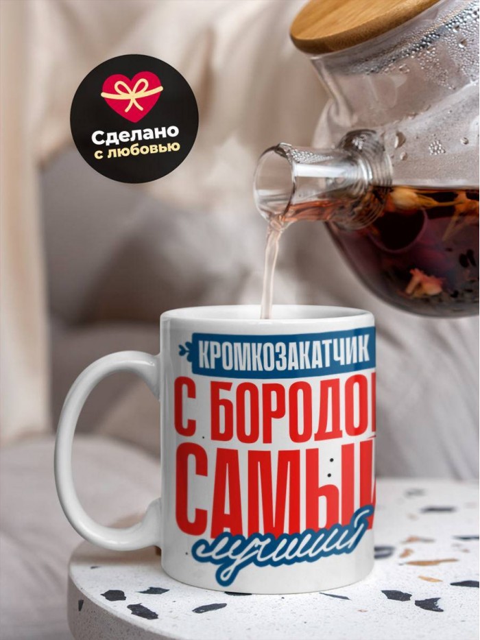 Сувенирная белая кружка с принтом "Кромкозакатчик с бородой самый лучший" – отличный подарок родным и близким людям для любого случая. Уникальный дизайн делает ее неповторимой и привлекательной для глаз. Принты могут быть разными: от ярких креативных решений, которые идеально подойдут молодежи, до классических элегантных узоров, радующих взгляд людей любого поколения во время чаепития. Рисунок наносится с использованием специализированного оборудования, материалами, прошедшими испытания на пригодность к использованию в быту.