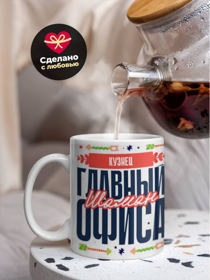 Сувенирная белая кружка с принтом "Кузнец главный шаман офиса" – отличный подарок родным и близким людям для любого случая. Уникальный дизайн делает ее неповторимой и привлекательной для глаз. Принты могут быть разными: от ярких креативных решений, которые идеально подойдут молодежи, до классических элегантных узоров, радующих взгляд людей любого поколения во время чаепития. Рисунок наносится с использованием специализированного оборудования, материалами, прошедшими испытания на пригодность к использованию в быту.
