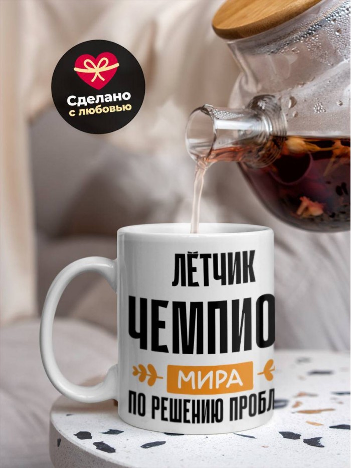 Сувенирная белая кружка с принтом "Лётчик чемпион мира по решению проблем" – отличный подарок родным и близким людям для любого случая. Уникальный дизайн делает ее неповторимой и привлекательной для глаз. Принты могут быть разными: от ярких креативных решений, которые идеально подойдут молодежи, до классических элегантных узоров, радующих взгляд людей любого поколения во время чаепития. Рисунок наносится с использованием специализированного оборудования, материалами, прошедшими испытания на пригодность к использованию в быту.