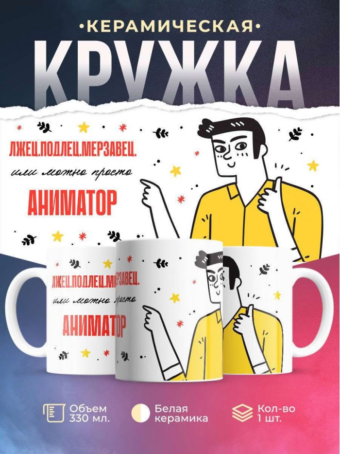 Сувенирная белая кружка с принтом "Лжец подлец мерзавец или можно просто аниматор" – отличный подарок родным и близким людям для любого случая. Уникальный дизайн делает ее неповторимой и привлекательной для глаз. Принты могут быть разными: от ярких креативных решений, которые идеально подойдут молодежи, до классических элегантных узоров, радующих взгляд людей любого поколения во время чаепития. Рисунок наносится с использованием специализированного оборудования, материалами, прошедшими испытания на пригодность к использованию в быту.
