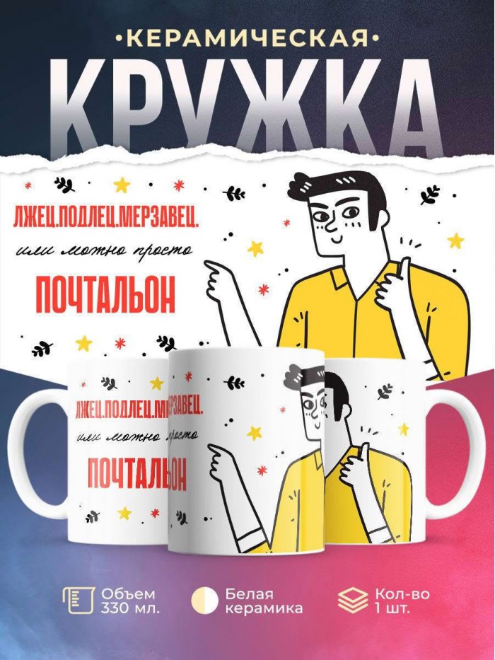 Сувенирная белая кружка с принтом "Лжец подлец мерзавец или можно просто почтальон" – отличный подарок родным и близким людям для любого случая. Уникальный дизайн делает ее неповторимой и привлекательной для глаз. Принты могут быть разными: от ярких креативных решений, которые идеально подойдут молодежи, до классических элегантных узоров, радующих взгляд людей любого поколения во время чаепития. Рисунок наносится с использованием специализированного оборудования, материалами, прошедшими испытания на пригодность к использованию в быту.