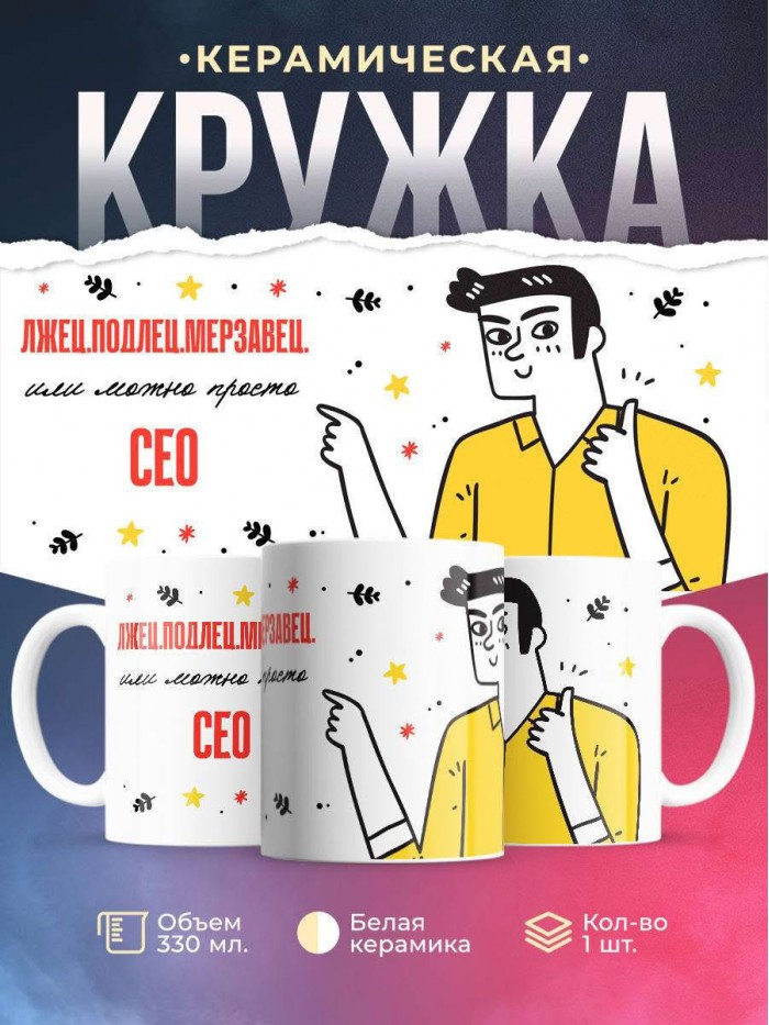 Сувенирная белая кружка с принтом "Лжец подлец мерзавец или можно просто сео" – отличный подарок родным и близким людям для любого случая. Уникальный дизайн делает ее неповторимой и привлекательной для глаз. Принты могут быть разными: от ярких креативных решений, которые идеально подойдут молодежи, до классических элегантных узоров, радующих взгляд людей любого поколения во время чаепития. Рисунок наносится с использованием специализированного оборудования, материалами, прошедшими испытания на пригодность к использованию в быту.