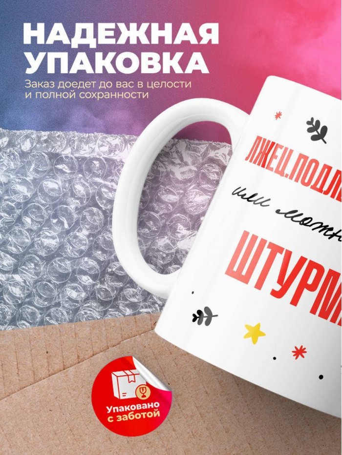 Кружка изготовлена из качественной керамики. Это обеспечивает долгий срок службы продукта. Прочный материал кружки выдерживает физические воздействия. Ее легко можно брать с собой в путешествие, без страха возникновения повреждений. Она удобна в использовании и легко моется. Покрытие кружки выдерживает мытье с применением бытовой химии любого типа. Белый цвет бокала идеально сочетается с принтами. Это делает ее универсальным подарком к празднику для людей всех возрастов и полов. При заказе можно выбрать вариант, который больше подойдет для определенного клиента.