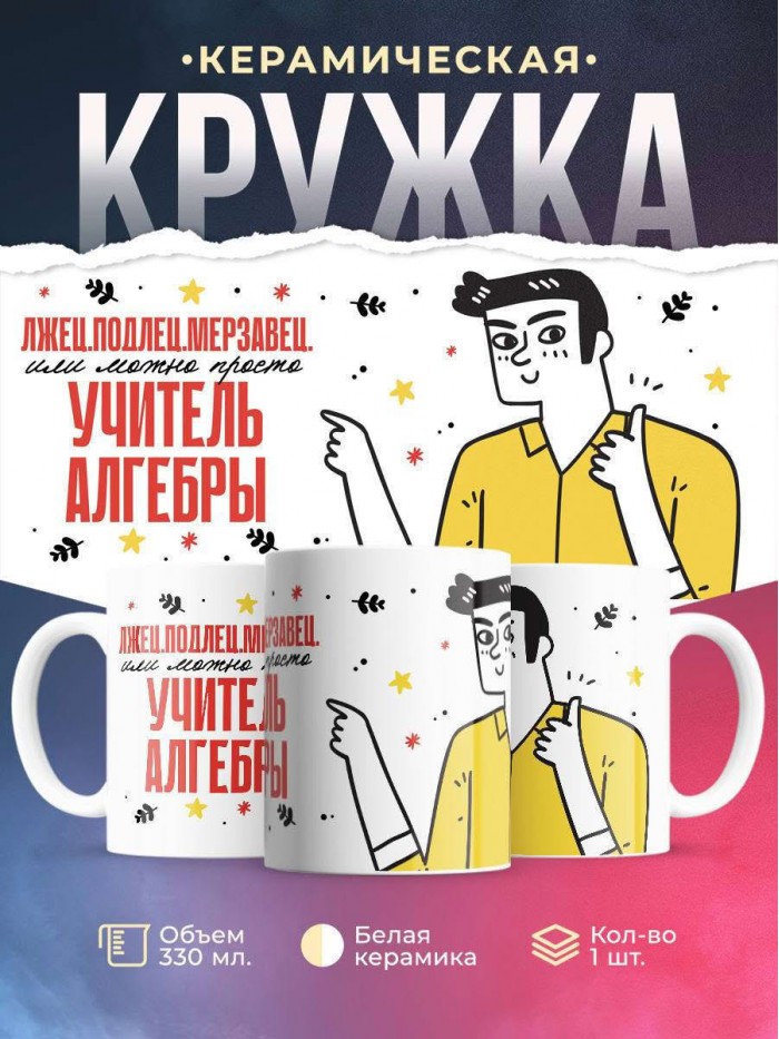 Сувенирная белая кружка с принтом "Лжец, подлец, мерзавец или можно просто учитель алгебры" – отличный подарок родным и близким людям для любого случая. Уникальный дизайн делает ее неповторимой и привлекательной для глаз. Принты могут быть разными: от ярких креативных решений, которые идеально подойдут молодежи, до классических элегантных узоров, радующих взгляд людей любого поколения во время чаепития. Рисунок наносится с использованием специализированного оборудования, материалами, прошедшими испытания на пригодность к использованию в быту.