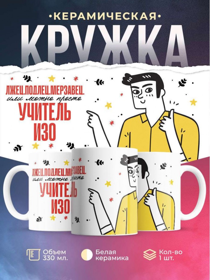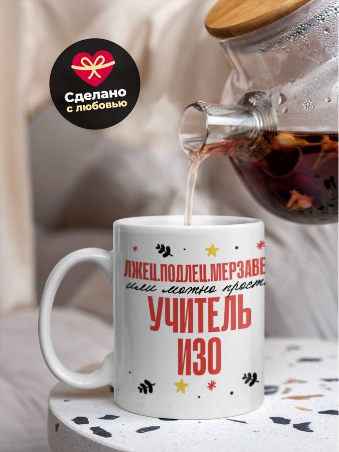Сувенирная белая кружка с принтом "Лжец, подлец, мерзавец или можно просто учитель изо" – отличный подарок родным и близким людям для любого случая. Уникальный дизайн делает ее неповторимой и привлекательной для глаз. Принты могут быть разными: от ярких креативных решений, которые идеально подойдут молодежи, до классических элегантных узоров, радующих взгляд людей любого поколения во время чаепития. Рисунок наносится с использованием специализированного оборудования, материалами, прошедшими испытания на пригодность к использованию в быту.