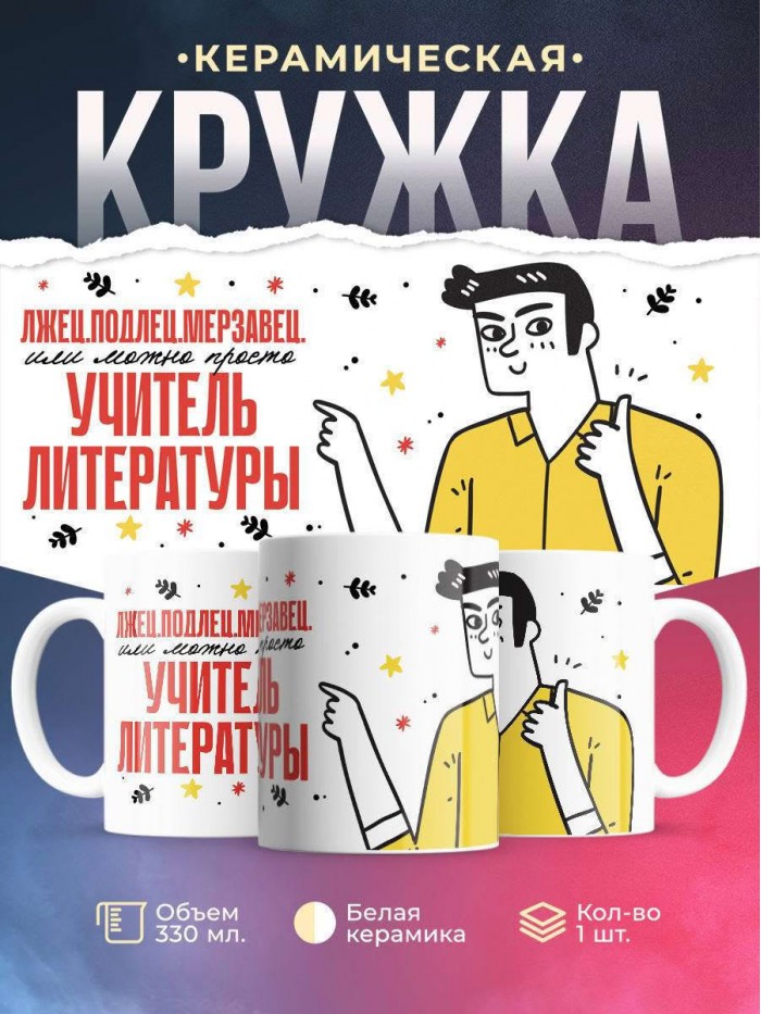 Сувенирная белая кружка с принтом "Лжец, подлец, мерзавец или можно просто учитель литературы" – отличный подарок родным и близким людям для любого случая. Уникальный дизайн делает ее неповторимой и привлекательной для глаз. Принты могут быть разными: от ярких креативных решений, которые идеально подойдут молодежи, до классических элегантных узоров, радующих взгляд людей любого поколения во время чаепития. Рисунок наносится с использованием специализированного оборудования, материалами, прошедшими испытания на пригодность к использованию в быту.